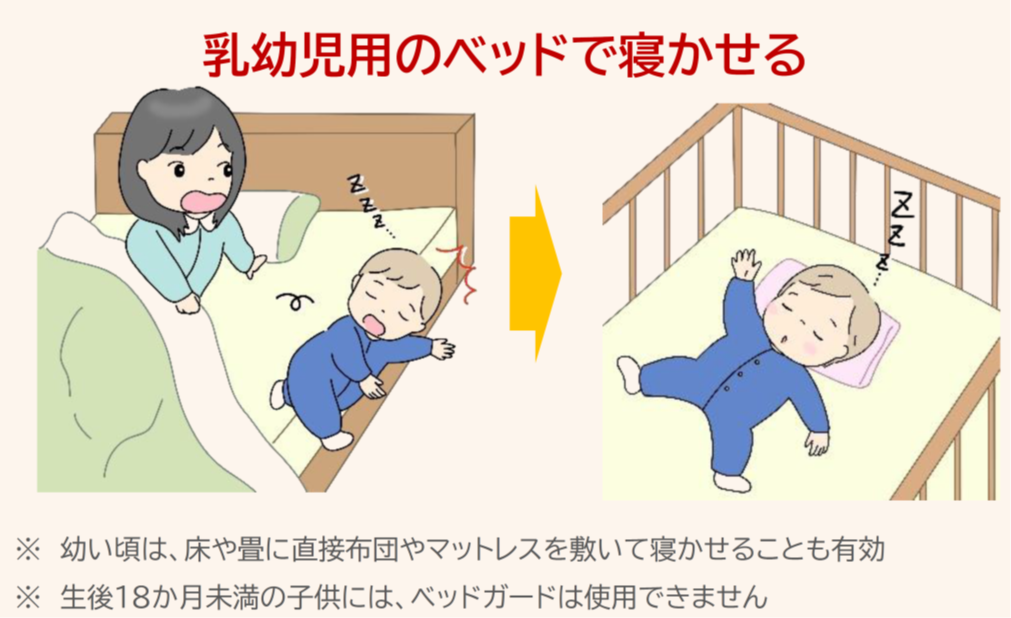 保護者が寝ている間に起こることも多い、睡眠中の子どもの事故。保護者が常にそばで見守り防止することが難しいからこそ、事故を予防するために子どもの成長や発達段階に応じて「危ないところを変える」ことが大切です