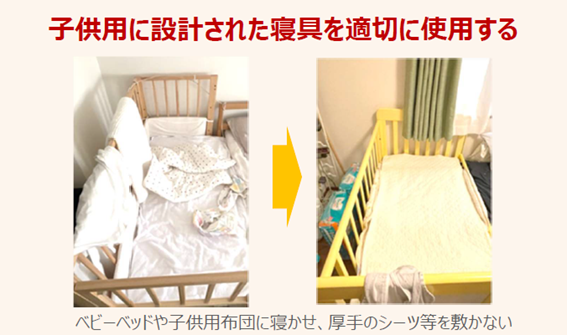 保護者が寝ている間に起こることも多い、睡眠中の子どもの事故。保護者が常にそばで見守り防止することが難しいからこそ、事故を予防するために子どもの成長や発達段階に応じて「危ないところを変える」ことが大切です